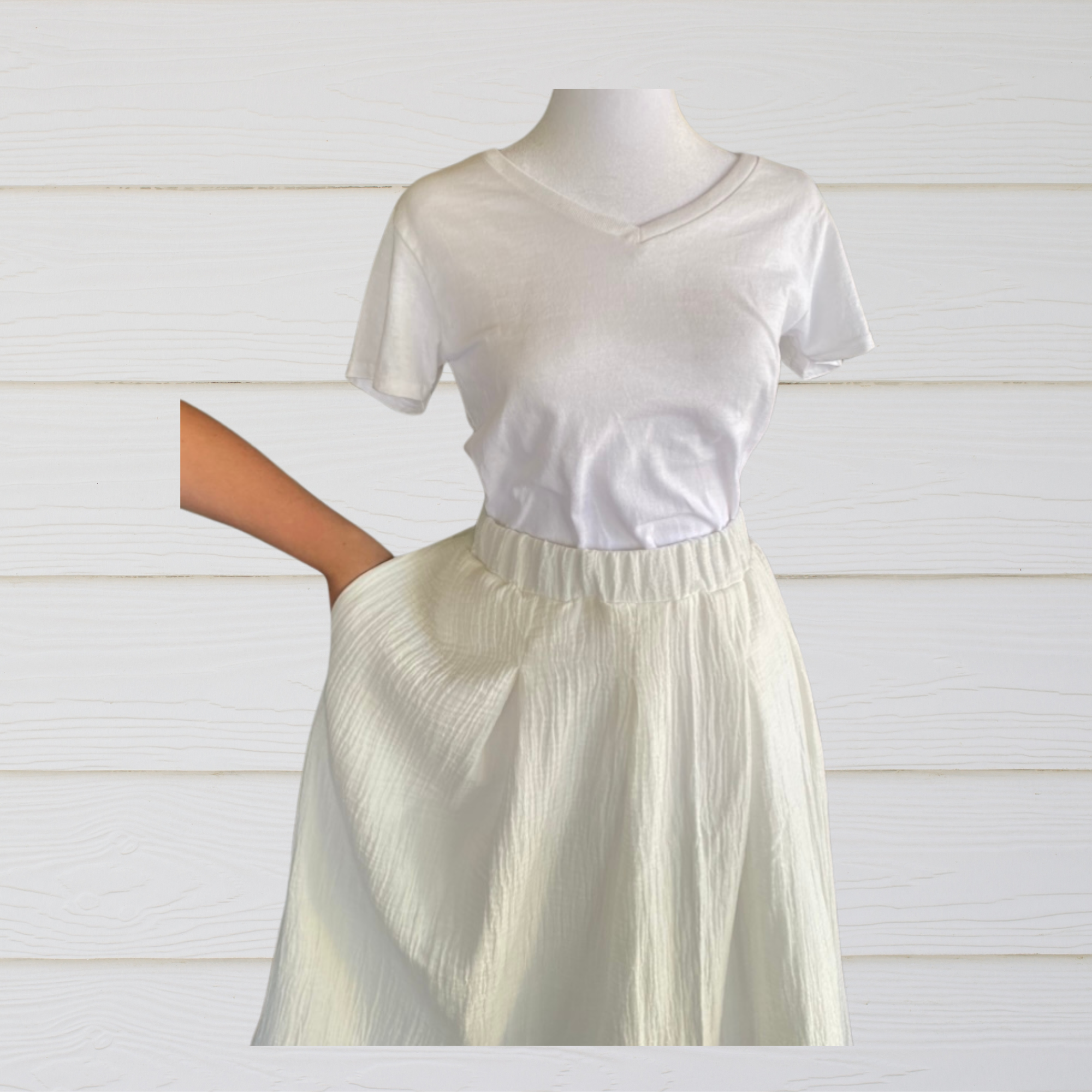 All materials—skirt, fringes, blue border—are made from 100% cotton to ensure Torah compliance. Soft, breathable, and comfortable, this garment is designed with care and quality.  These skirts are designed to be mid-calf length but can be customized upon request. You will need a slip to wear under for modesty. This skirt features an elastic waistband.