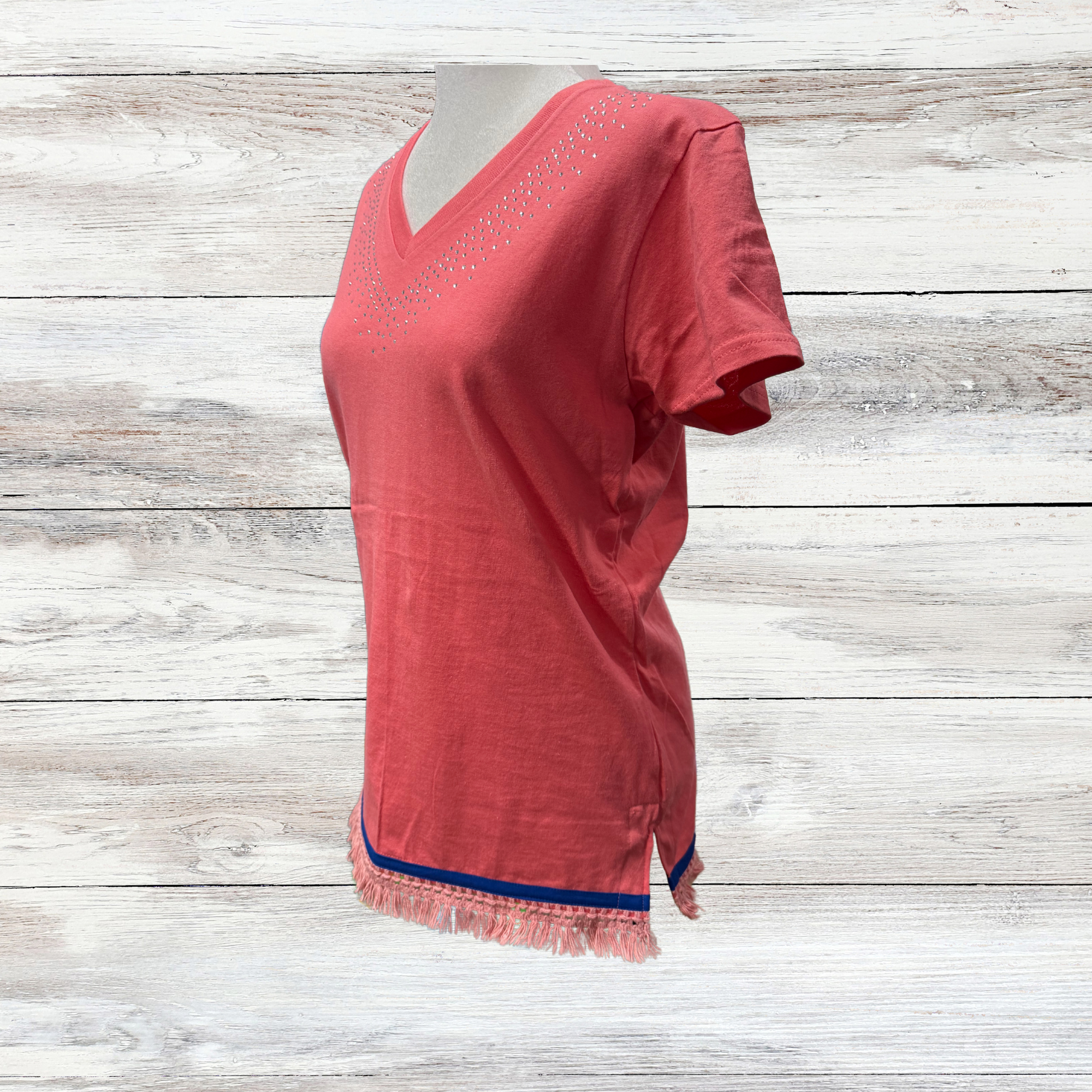 Beautiful and comfortable women's RHINESTONE v-neck shirts with fringes for our sisters in faith.  We offer several different colors but can possibly get what you are looking for if your desired color is not listed, message me to inquire.